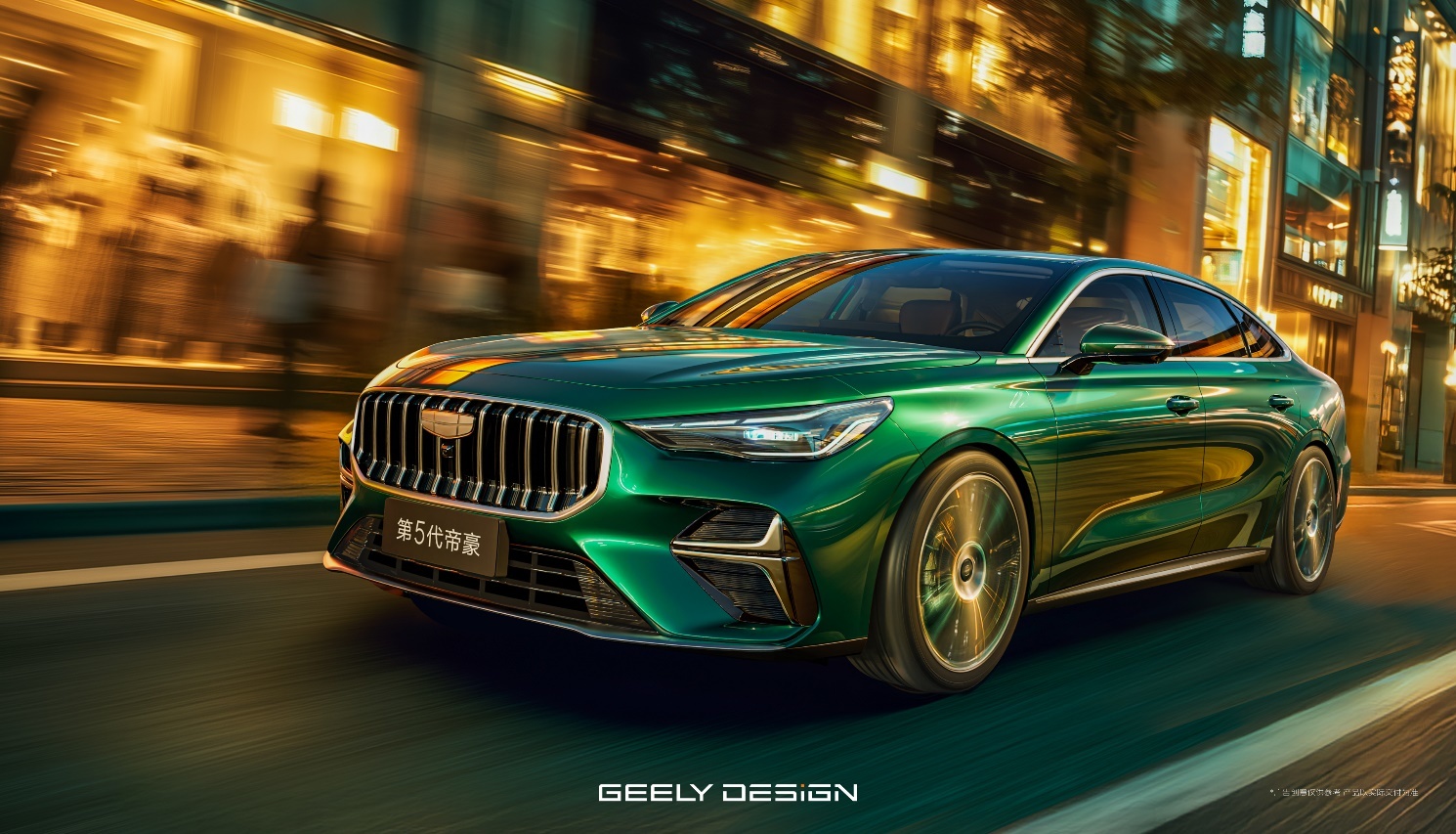 从官图可以看出,第5代帝豪延续吉利4.0家族设计语言,新车配备12根纵向镀铬饰条填充的直瀑式盾形中网,搭配吉利银色车标,气场直逼豪华品牌。两侧鹰眼式LED大灯组向后延伸,内部集成三段式日间行车灯,照明距离超170米,夜间行驶时犹如“光刃”划破黑暗。前包围采用双“L”形镀铬导流槽设计,配合横贯式下格栅与银色前铲,营造出低趴战斗姿态。