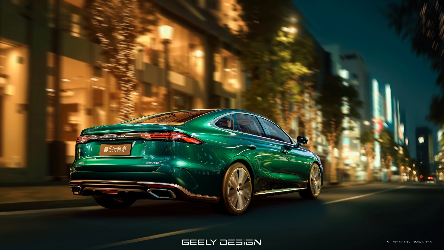 车身侧面配备18英寸双色轮毂,搭配全车9处外部镀铬饰条,层次分明,错落有致,光影流转间,尽显整车豪华质感。车尾采用小鸭尾设计,让整车更添动感气息。同时,还搭载了豪华车同源的LED超红光尾灯,使第5代帝豪的外观更具豪华感的同时,拥有超300米的穿透能力,即便在雨雾、沙尘、强光环境下也能保持高辨识度,大幅提升了视觉宽度与整车气场。车身尺寸方面,长/宽/高l481518851480mm,轴距2755mm。
