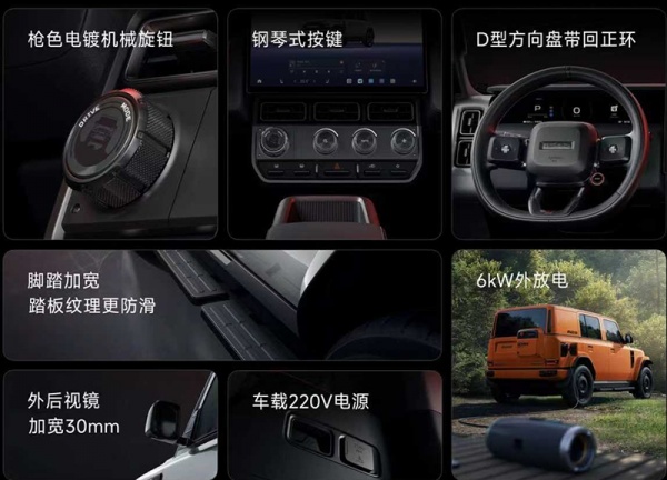 外观方面,赛博版加入赛博朋克风格,黑化前格栅搭配全新前包围,造型更为复杂。车侧将提供圆饼轮毂,前翼子板搭配银色质感饰件,车顶还配备了行李架。车尾同样换装全新后包围,和车头相呼应。另外还配备小书包。车身尺寸方面,新车长宽高分别为4249*1915*1845mm,轴距2735mm。