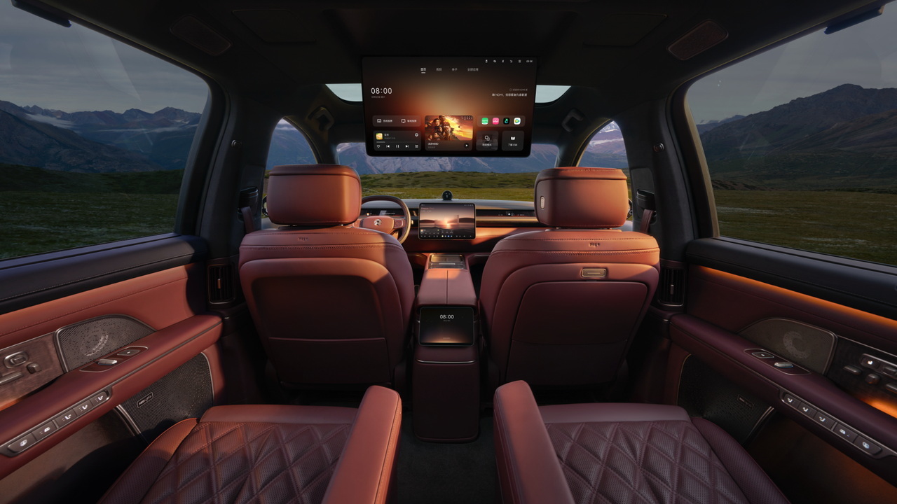 内饰方面,全新ES8以“环抱式飞航座舱”为设计主题,搭载15.6英寸AMOLED中控屏与21.4英寸mini-LED天空屏支持杜比视界,二排吸顶屏与8.8L智能冰箱(支持-2℃至55℃调温)提升娱乐与便利性;智能调光隐私车窗实现四区独立控制,兼顾通透视野与隐私需求。全系标配三张零重力座椅,副驾女王座椅支持20项调节与325mm腿托,二排双飞航零重力座椅配备电动扶手、脚托与130mm滑动行程,第三排座椅支持130大躺角模式。