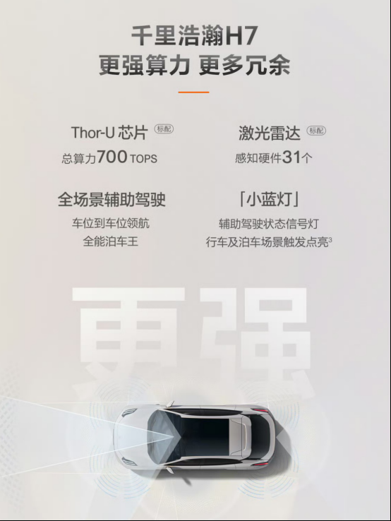 辅助驾驶方面,焕新极氪001全系标配千里浩瀚H7辅助驾驶系统,硬件上标配了激光雷达,并搭载英伟达Thor-U芯片,辅助驾驶小蓝灯也给加上了,在辅助驾驶能力这块焕新极氪001算是常规升级,让它的辅助驾驶能力赶上了大部队,毕竟这套系统的软硬件都已经下放到20万以内的领克10 EM-P了,定位更高端的极氪001岂有不标配的道理?
