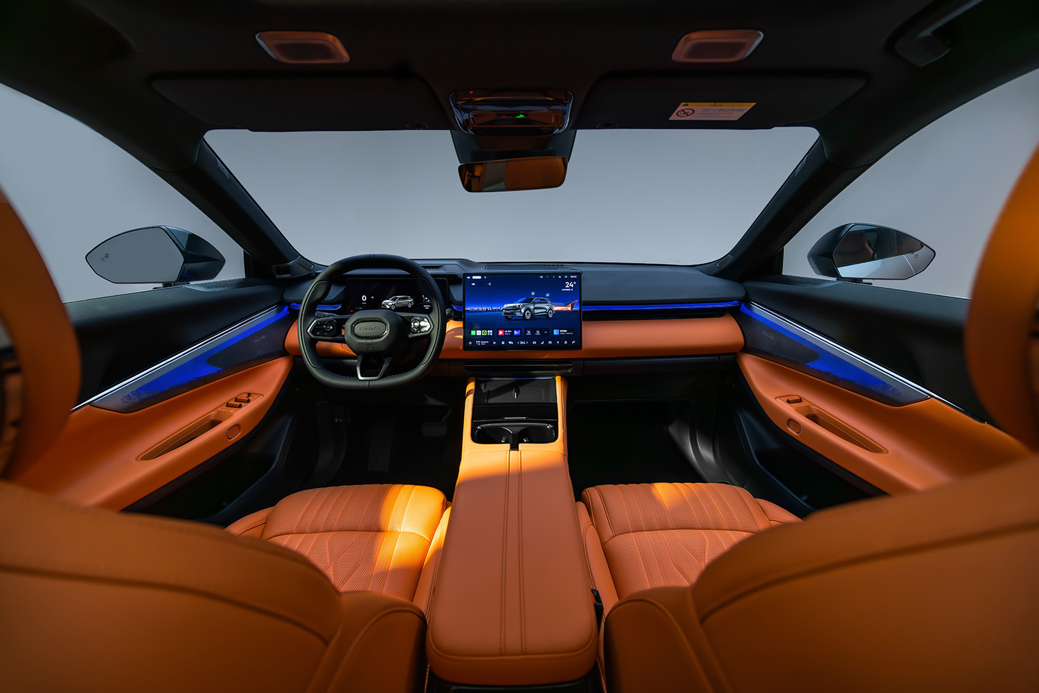内饰方面,新款领克08 EM-P提供曙光橙和日光米两种配色,并标配Nappa真皮座椅。前后排座椅均提供加热/通风/按摩功能,真正实现全车舒适平权。