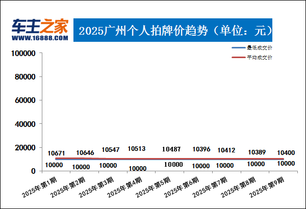 广州拍牌价涨跌幅度依旧不大,最低成交价保持在10000元,平均成交价为10400元。广州个人拍牌指标数量依旧在持续增加。