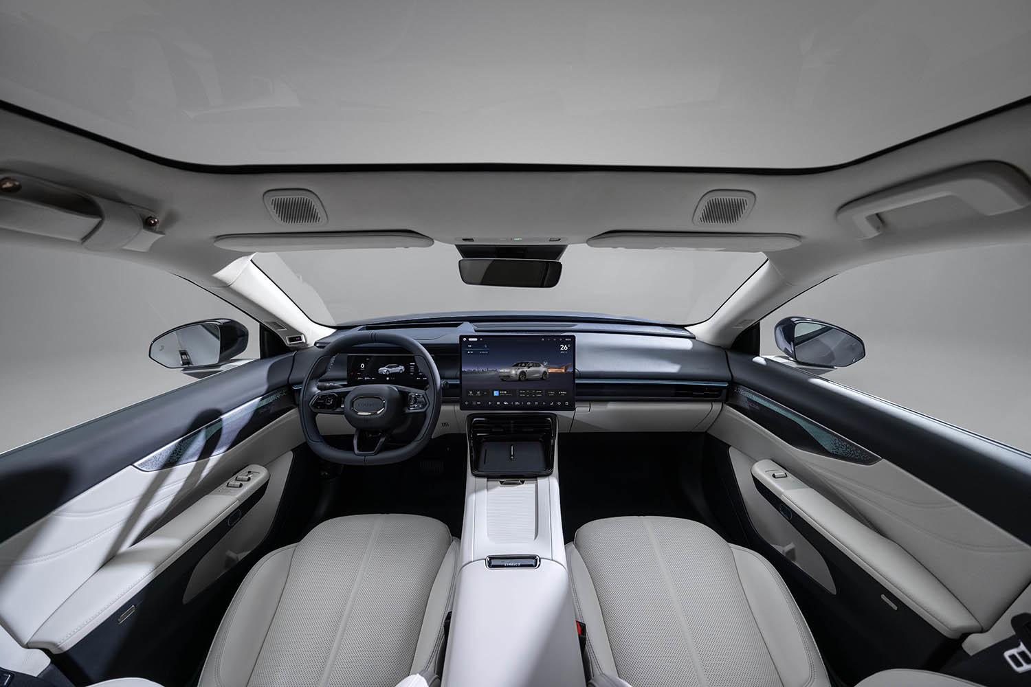 配置方面,新车将天窗升级为1.9平方米的四层隔热防晒全景玻璃天幕,配合后排侧窗和后风挡隐私玻璃和多处双层加胶玻璃,进一步提升车内静谧性和隐私性。