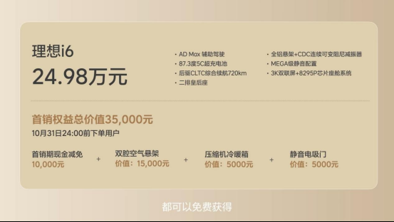 并且10月31日24:00前下单的用户可享受价值35000元的权益,包括1万元的现金减免,还赠送双腔空悬+冷暖冰箱+静音电吸门,除了冰箱可能有变数之外,空悬和电吸门基本上就可以理解为是标配。