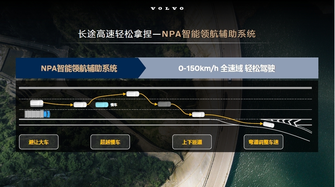 在驾驶辅助方面,全新XC70也是沃尔沃首次搭载NPA智能领航辅助系统的车型,可支持0-150km/h速域内的高速路和城市快速路领航辅助,并且具备自动避让大车、自动超越慢车、上下匝道和弯道主动减速等功能。此项功能率先在江浙沪地区的高快路开通,后续更多地区将通过OTA持续升级开通。