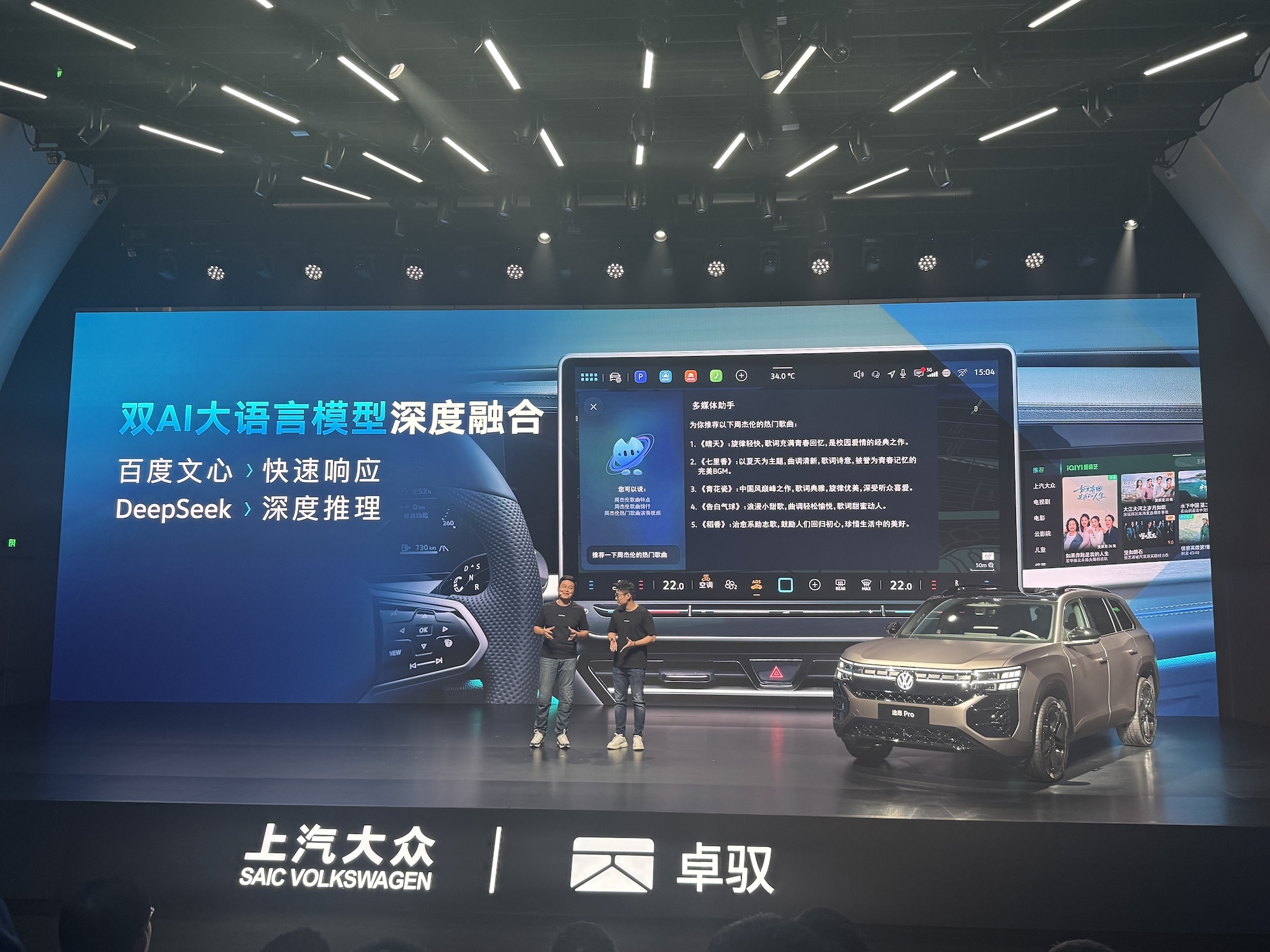 此次智舱进化带来车载全知大语言模型、智能语音交互、Face ID智慧识别、手机互联全面升级四大亮点。上汽大众与百度密切合作,实现百度文心+DeepSeek双AI大模型深度融合,让语音助手具备全场景交互能力。智能语音交互支持多意图识别,最多能理解单句话中五个意图,并支持智能语音车控和连续对话;Face ID 刷脸即登录,个性化设置自动同步,打造专属驾乘环境;还有APP远程控车备车、数字钥匙无感解锁等,生态无缝互联。