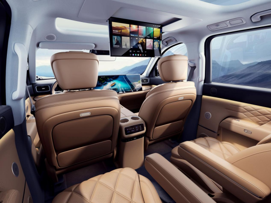 在配置层面,作为一辆宽敞的大六座车型,冰箱、彩电和大沙发等舒适性配置自然不可或缺。例如,后排娱乐屏、二排零重力座椅、9.2L智能冷暖冰箱、小桌板,以及23扬声器伯牙知音音响等高端舒适性配置一应俱全。