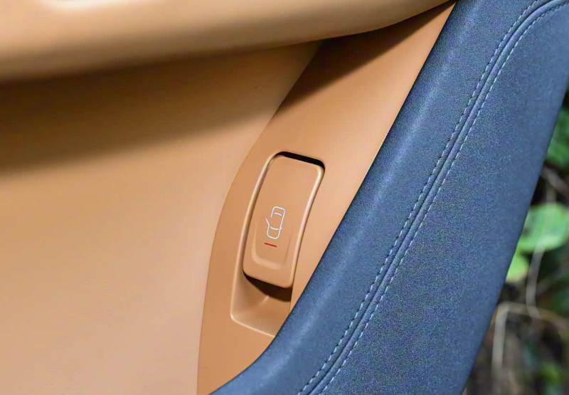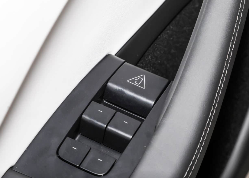 取消了传统门把手,按下按钮开门,优点是不会出现门把手夹手的情况,让整车设计更加简洁,开门上车的方式比较优雅。缺点为全电控信号控制存在发生碰撞后无法正常解锁的情况。