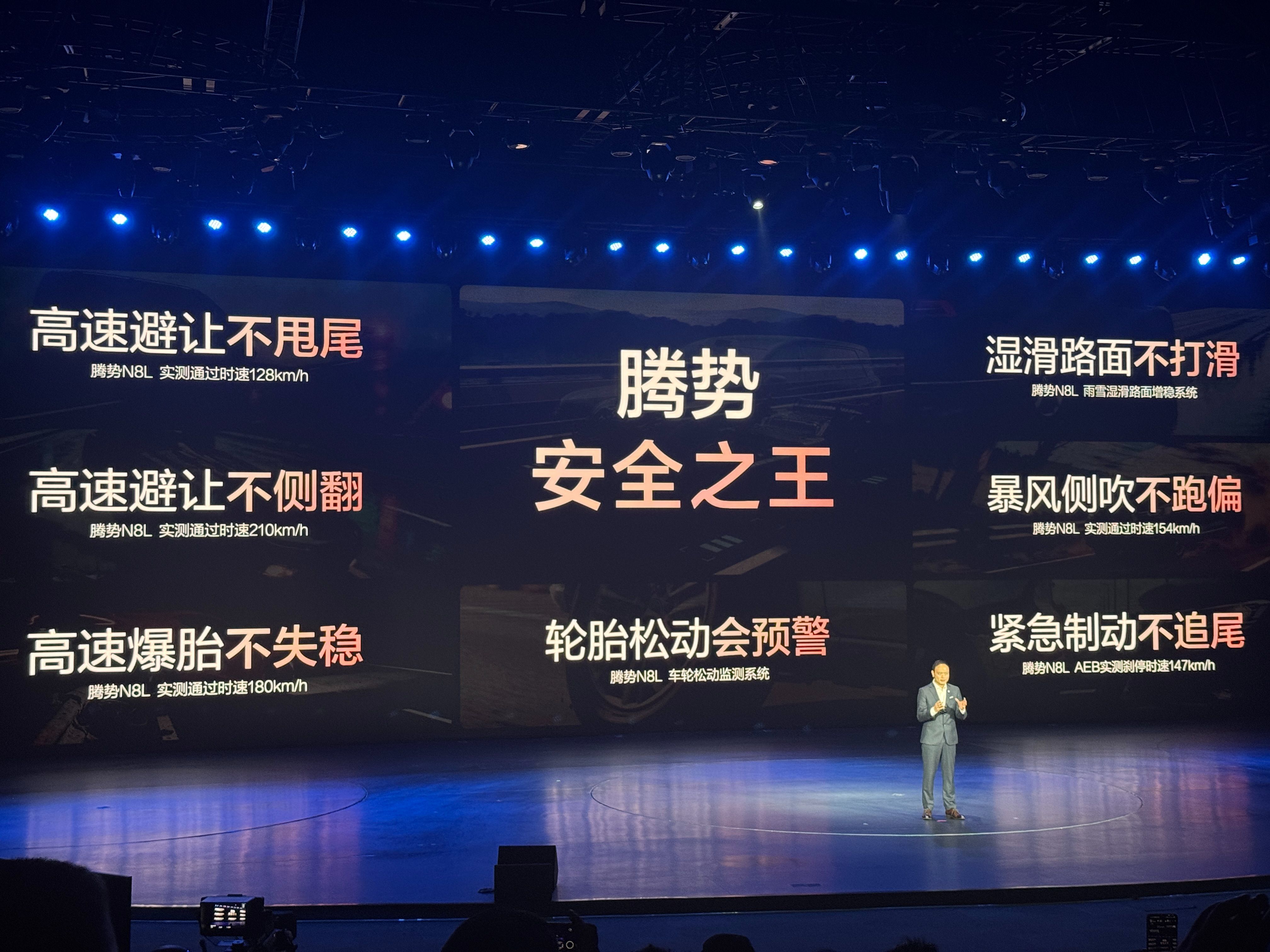 主动安全方面,得益于易三方,腾势N8L能够以128km/h高速避让不甩尾、210km/h高速避让(鱼钩测试)不侧翻、180km/h高速爆胎不失稳、154km/h暴风侧吹不跑偏、147km/h AEB自动紧急制动、不怕雨雪路面打滑、车轮松动监测系统等,全方位提供技术支持,提升安全性。
