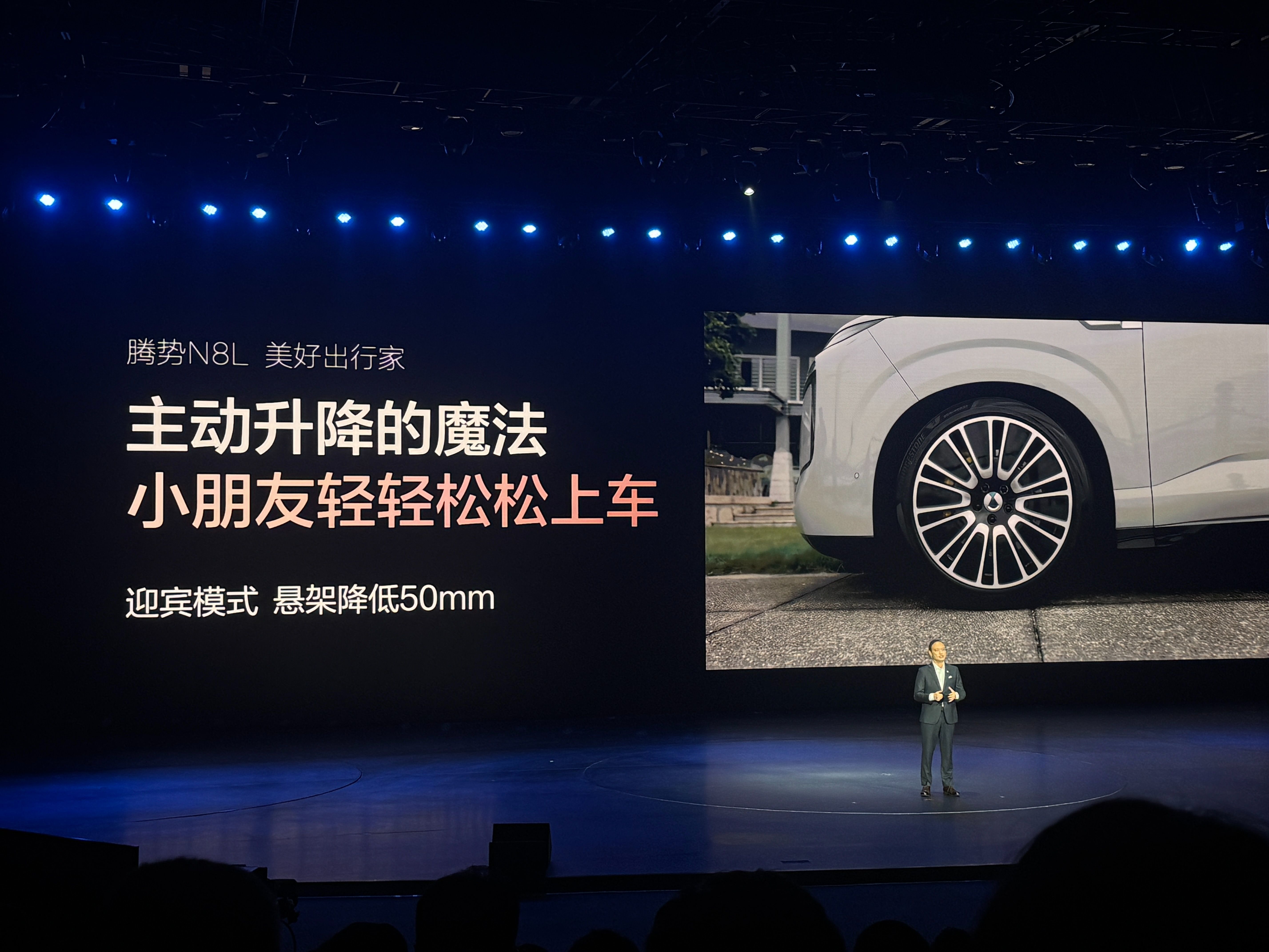 空间方面,凭借着长车身和长轴距,三排乘客都有充裕的乘坐空间,并且第三排还可进行前后移动,保证乘坐的同时,也能够延展后备厢的储物能力。全车六座电动座椅支持“一键切换”四大场景模式,并可自定义组合,形成“4+N”灵活布局,轻松适配多元家庭场景。此外整车设置49处收纳空间,搭配51L后备厢隐藏式储物盒,提升日常使用实用性。而对于SUV地板较高的情况,腾势N8L还配备“迎宾模式”,解锁车身便自动下降5cm,最低离地间隙仅有11.5cm,老人小孩不用踮脚,轻轻松松上车。