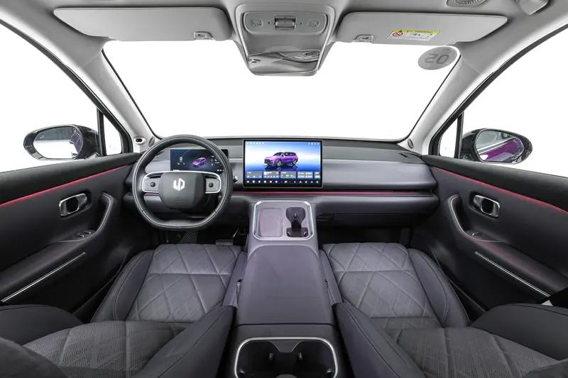 零跑C16采用与零跑C10相似的家族设计语言,整体造型简洁圆润,配备前后贯穿式大灯和隐藏式门把手。内饰延续C10风格,配备14.6英寸中控屏和10.25英寸仪表盘,第二排设有吸顶屏,提供三种内饰配色。