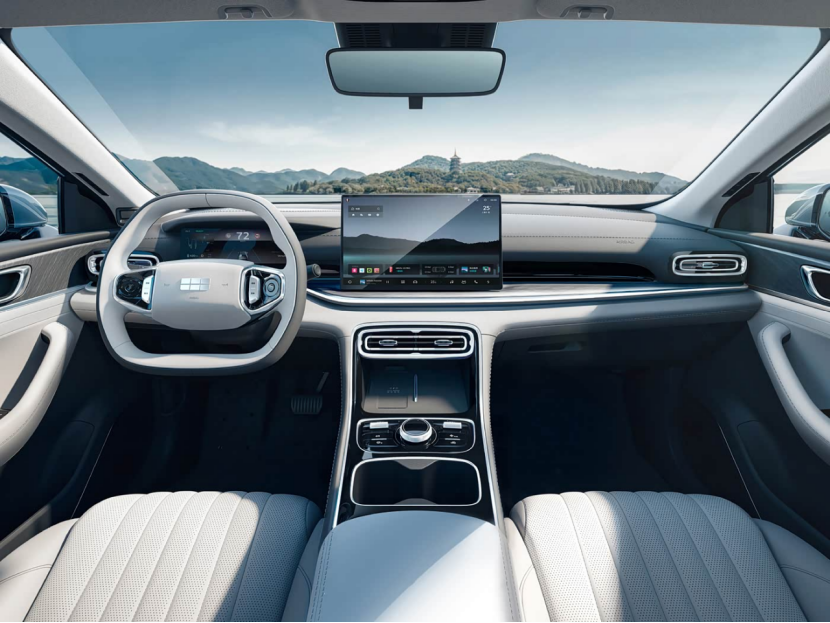 智能座舱搭载14.6英寸中控大屏+10.25英寸液晶仪表,车机系统是Flyme Auto车机系统,芯片为7nm龍鹰一号。而且车内采用了大量的软性材质和镀铬装饰,从内饰的布局、设计来看很有精致感。