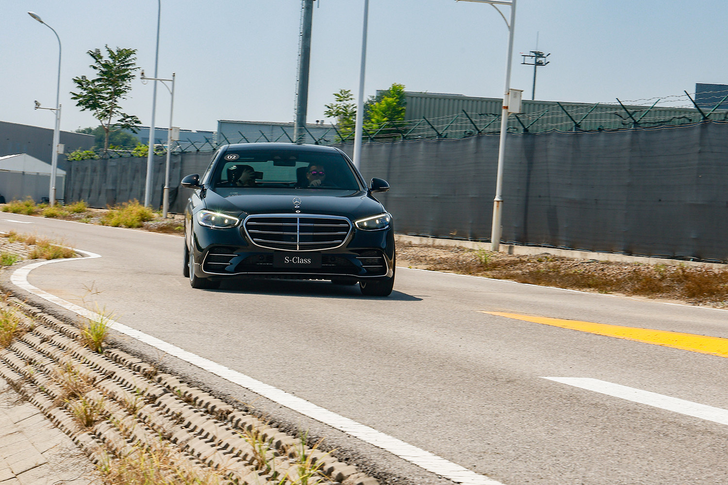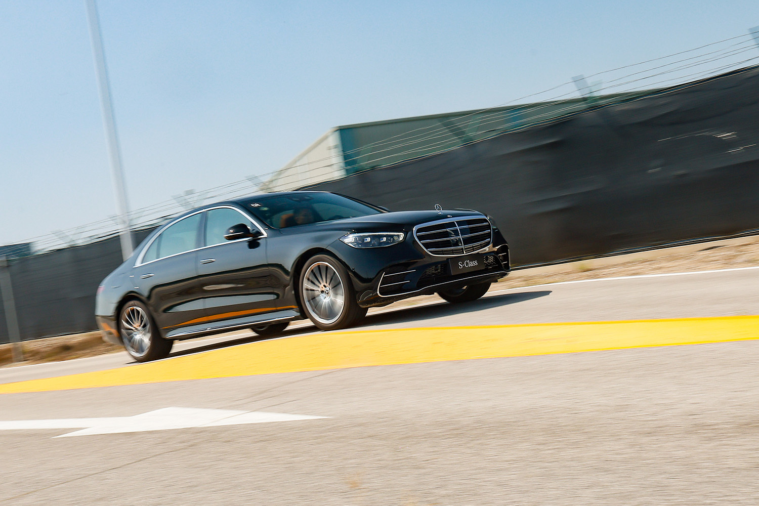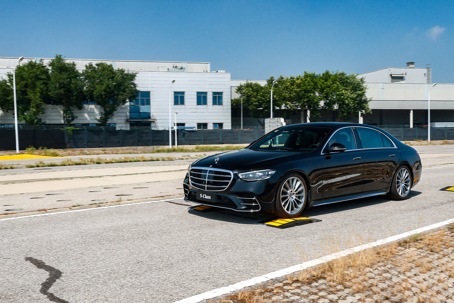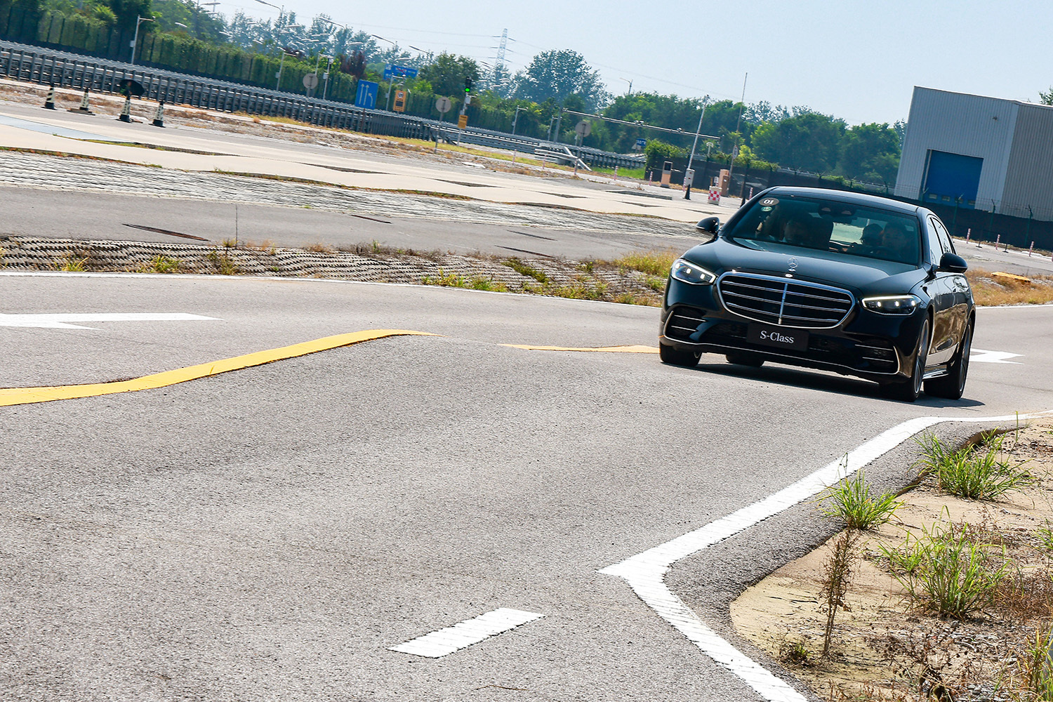 奔驰S级轿车搭载的空气弹簧和集成自适应连续可调减振系统增强版ADS+,可对每个车轮压缩和复原阻尼可独立调整并瞬时响应,在连续8字转弯时可以迅速响应车辆重心变化,实时调整各个车轮的减震器阻尼力,显著抑制了因车身反复横摆带来的不安定感。