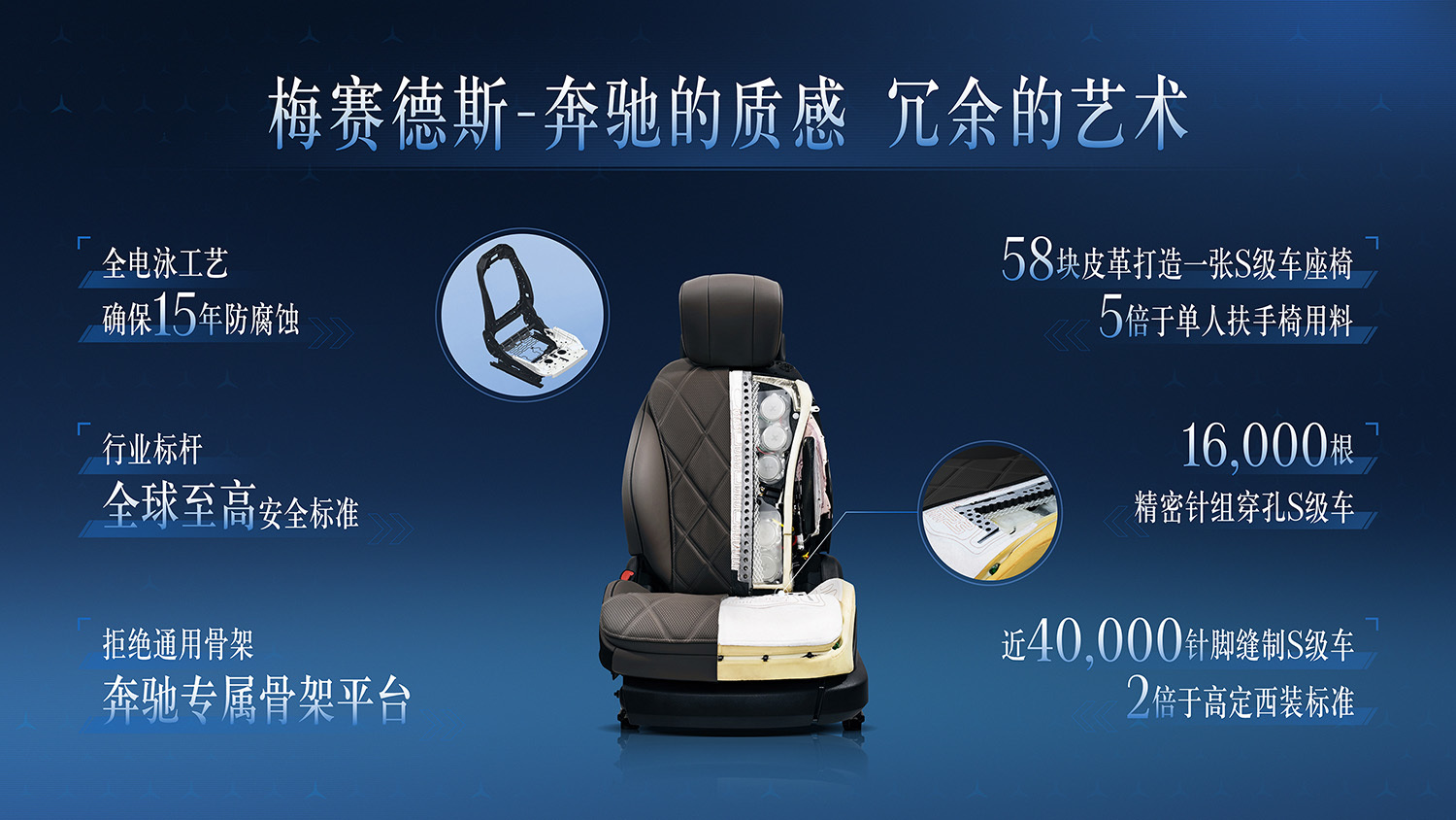 从底盘研发、验证需要4年打磨能看出,奔驰从来不把汽车视为快消品,而作为汽车舒适与豪华的业界标杆,奔驰的座椅也绝不仅仅是“大沙发”。“坐奔驰”的底蕴和内涵在舒适豪华的体验感之上,还有禁得起时间考验的品质与安全。