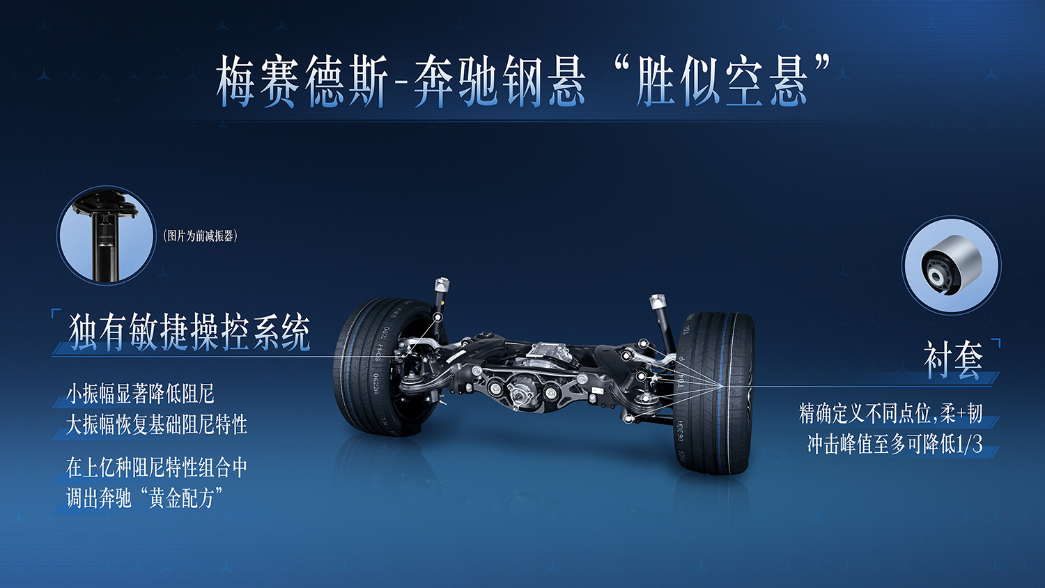 更顶级的产品如奔驰S500、S级迈巴赫配备的E-ABC智能魔术车身控制系统则带来主动悬架系统特有的、极为平稳的行驶体验。