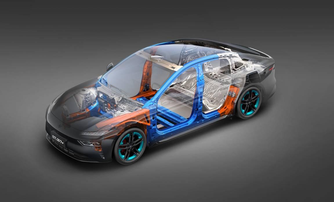 在安全方面,eπ007+车身采用高强度笼式结构与1500MPa热成型钢,获C-NCAP五星安全认证与“中国十佳车身”荣誉。其马赫电池系统具备“热电分离+应急冷却”双保险机制,配合蜂窝铝合金框架与超高强度钢装甲,构建多维防护体系。电池循环寿命达2000次,为国标两倍以上。