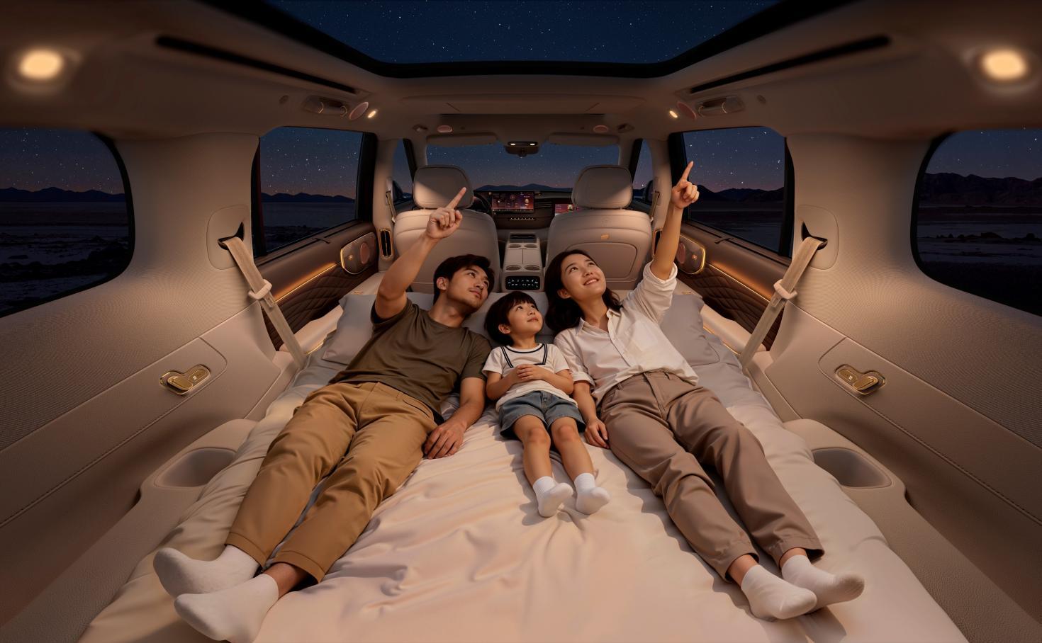 同时,新车首搭丹麦BO音响系统(25扬声器),配合4D机械按摩座椅(按摩强度达气动按摩7倍)、瞬净新风系统(每小时换气100次)与智控地暖系统,营造出歌剧院般的沉浸式体验。此外,车内还配备双层静音玻璃、柔光化妆镜、12L压缩机双开门冰箱等细节配置,全面提升舒适性。