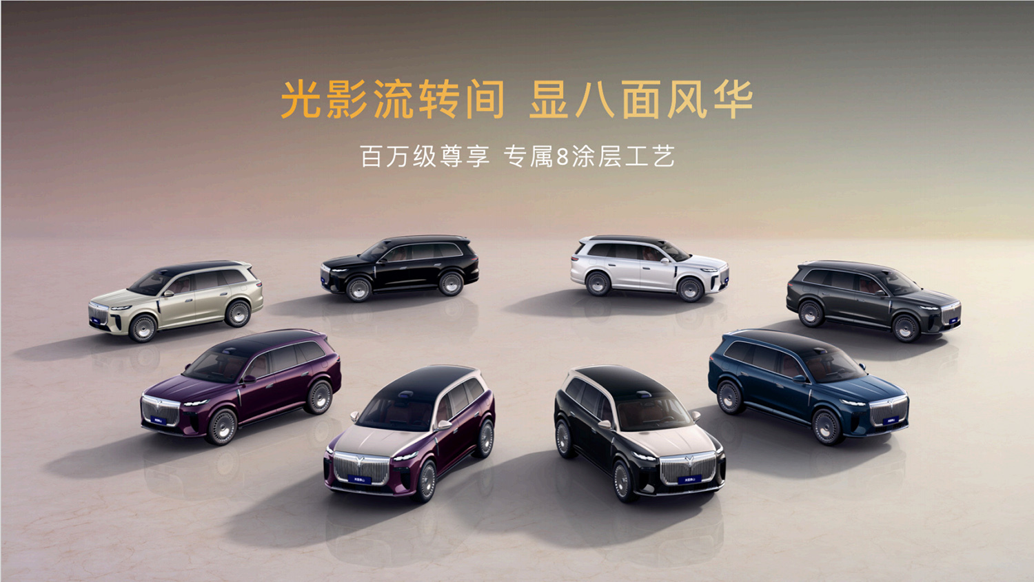 岚图泰山提供6款车身色,灵感均源自泰山山巅日出的自然景观色彩。此外,还有2款尽显豪华的双拼车身色,进一步突出其豪华旗舰身份。