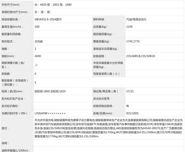 动力方面,新车提供2.0L混动两驱及2.5L混动四驱,两驱版发动机最大功率112kW,四驱版最大功率136kW。另外还提供2.0L燃油版,最大功率为126kW。