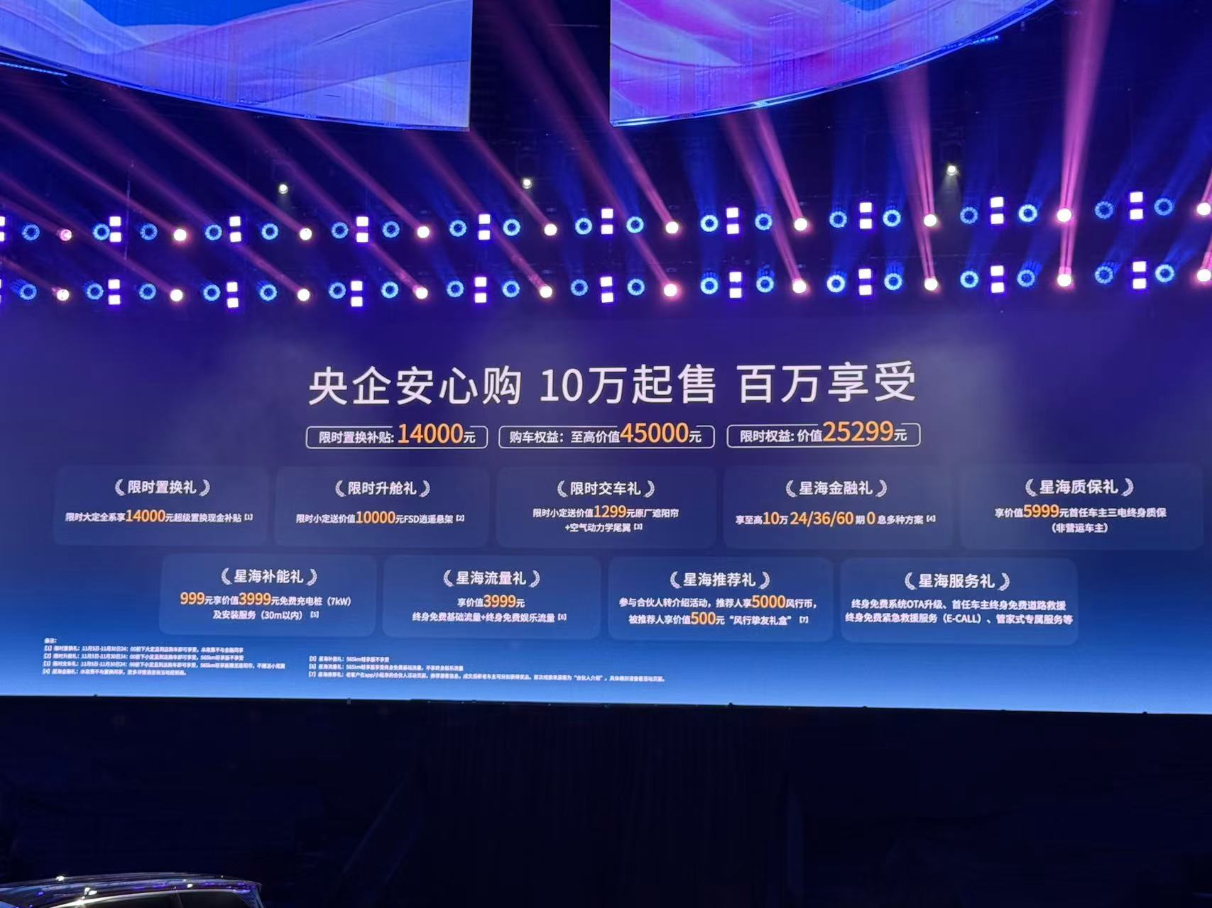 2025年11月19日,东风风行星海S7 800V超快充版正式上市,新车共推出四个版本,官方指导价11.99万元至14.99万元,限时置换一口价低至10.59万元起。