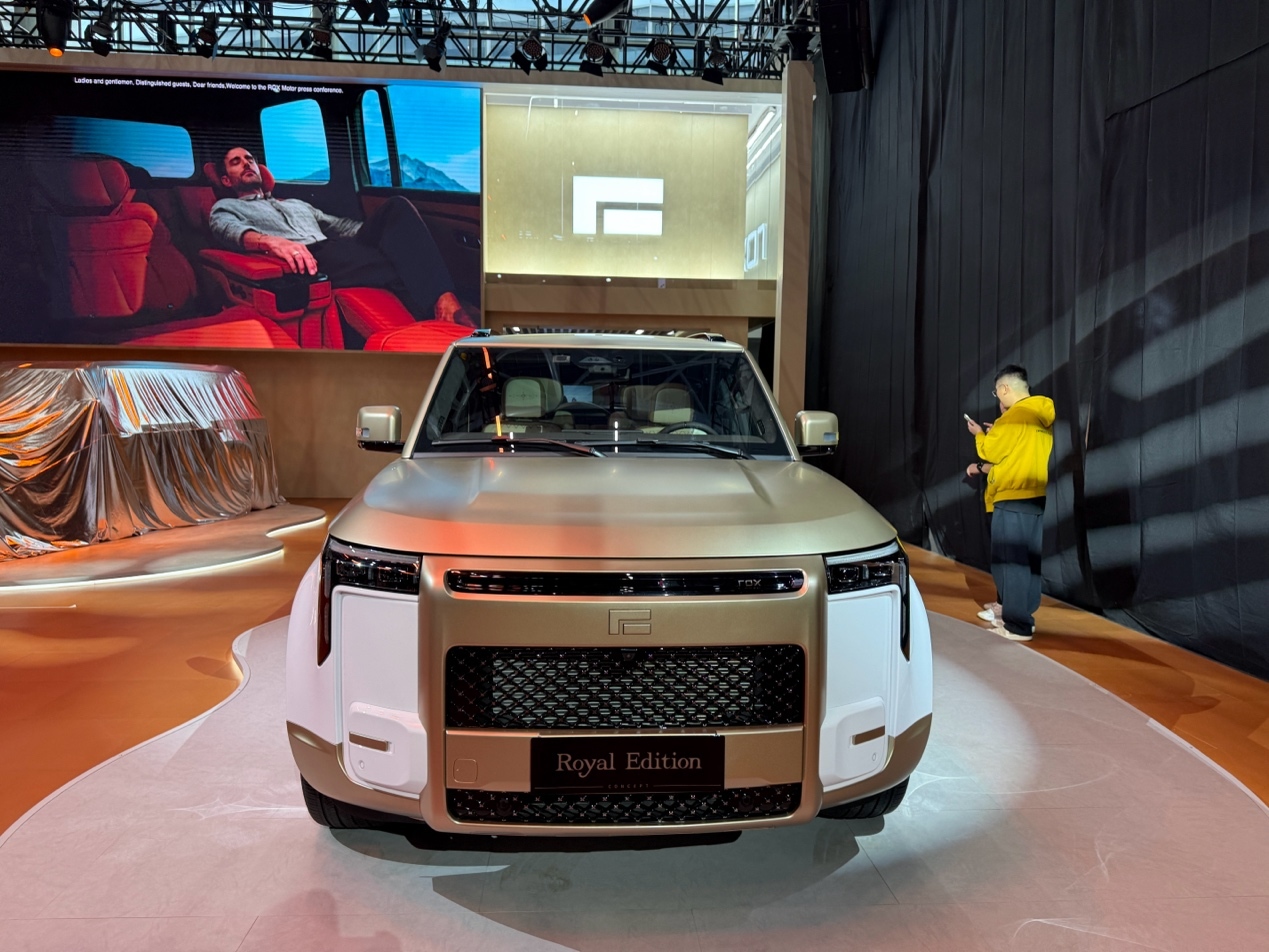 2025广州车展 在2025广州车展,极石汽车带来了基于ADAMAS打造的Royal Edition皇家定制版。这款车型是受中东皇室委托,将中东深厚的文化传承与对现代奢华材质的相互结合的一款移动现代行宫。