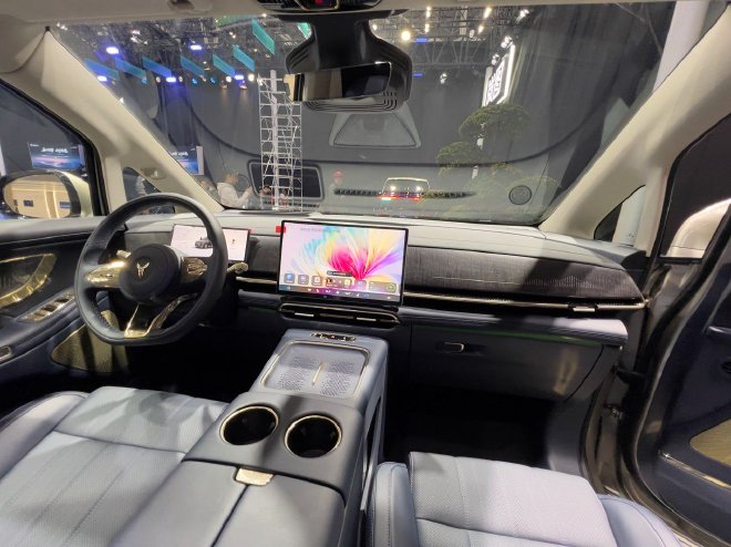 这次探馆的车型颜色是岚图梦想家山河的外观新增的“拂晓金晖”双拼配色,以顶级金匠工艺打造出如黎明破晓般的璀璨金辉,象征着磅礴的生机,寓意光耀前路大展宏图;采用专属20 英寸高定星漩轮毂。而在外观其他方面,梦想家岚图山河和2026款车型区别不大。