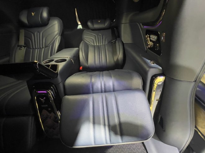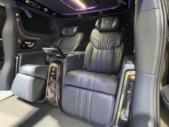 配50英寸巨幕影院,长途坐后排基本就是移动影院,丹拿音响音质有保障,冷暖冰箱夏天冰饮料冬天热咖啡都能搞定。