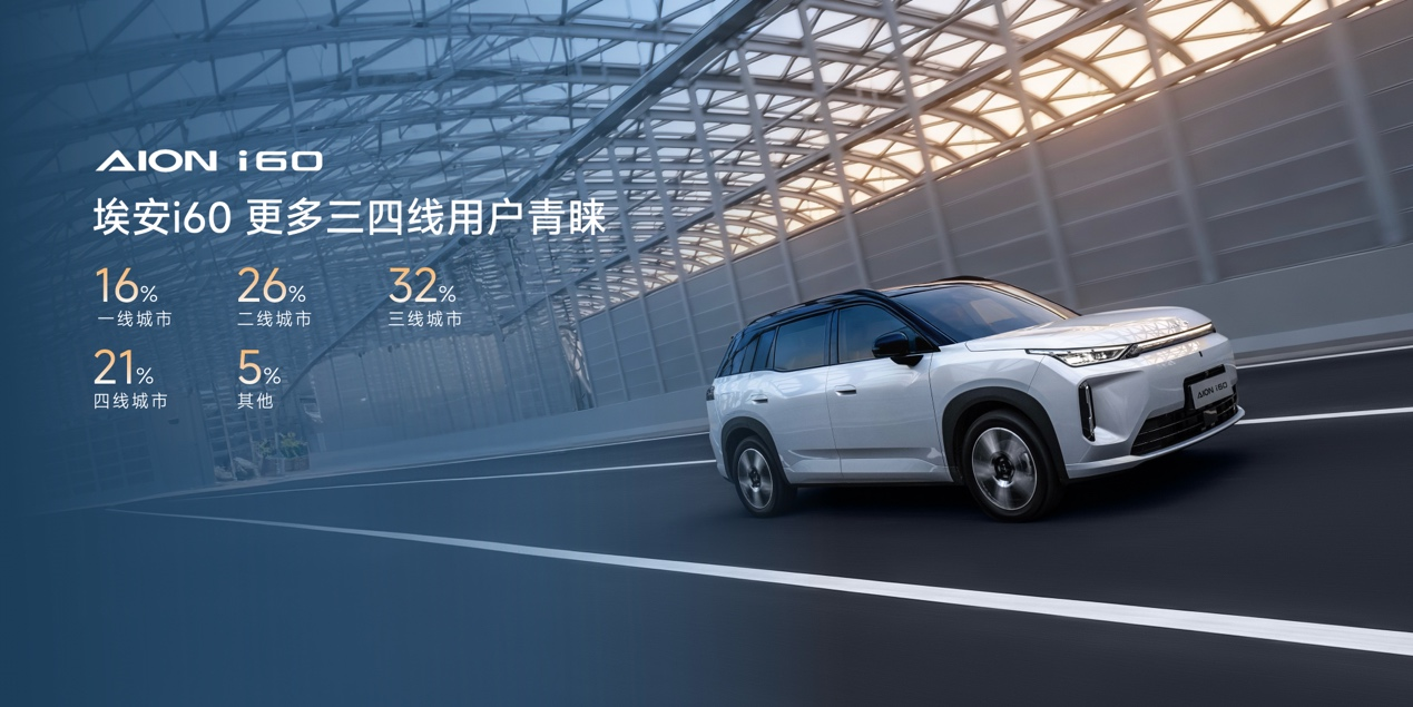 在城市区划上,埃安i60用户的分布也更均衡。其中一二线用户占比42%,三四五线用户占比58%。增电同价的高性价比,让埃安i60成为不同区域城市用户的首选。三四五线城市用户也能享受到与20万级豪华SUV同源的增程体验。此外,广汽埃安也在持续推进渠道下沉,让更多用户可以在家门口享受到埃安优质的产品和服务。