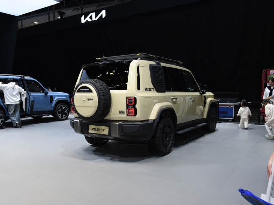 首先我们来看一眼外观,iCAR V27依旧采用与iCAR V23一样的设计语言,身上有很多经典越野车的设计元素,尤其是这圆头大灯点亮的那一刻真有点路虎卫士的神韵,看上去就像个可爱的大玩具。尺寸方面,iCAR V27长宽高分别为4909/1976/1894mm,轴距2910mm,标准的中大型SUV的尺寸,与方程豹钛7比较接近。