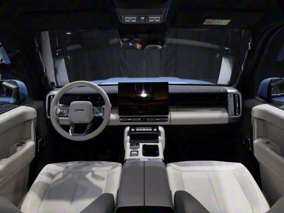如果说iCAR V27的外观是硬朗的大玩具,那么来到车内则是另一番景象,看着反而还挺精致豪华了起来,这也是符合购车群体的需求,那就是要方盒子的样子和家用的里子,座舱的亮点个人觉得是指令长座椅,可以类比路虎的指挥官座椅,驾驶视野非常宽阔,以及在这个价位上首次采用了双舷窗的设计,与蔚来ET9很类似!