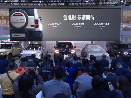 最后,亮相发布会公布了iCAR V27后续的上市动态,将于12月开启盲订,明年1月份会开放试驾,同时会在明年一季度正式上市。