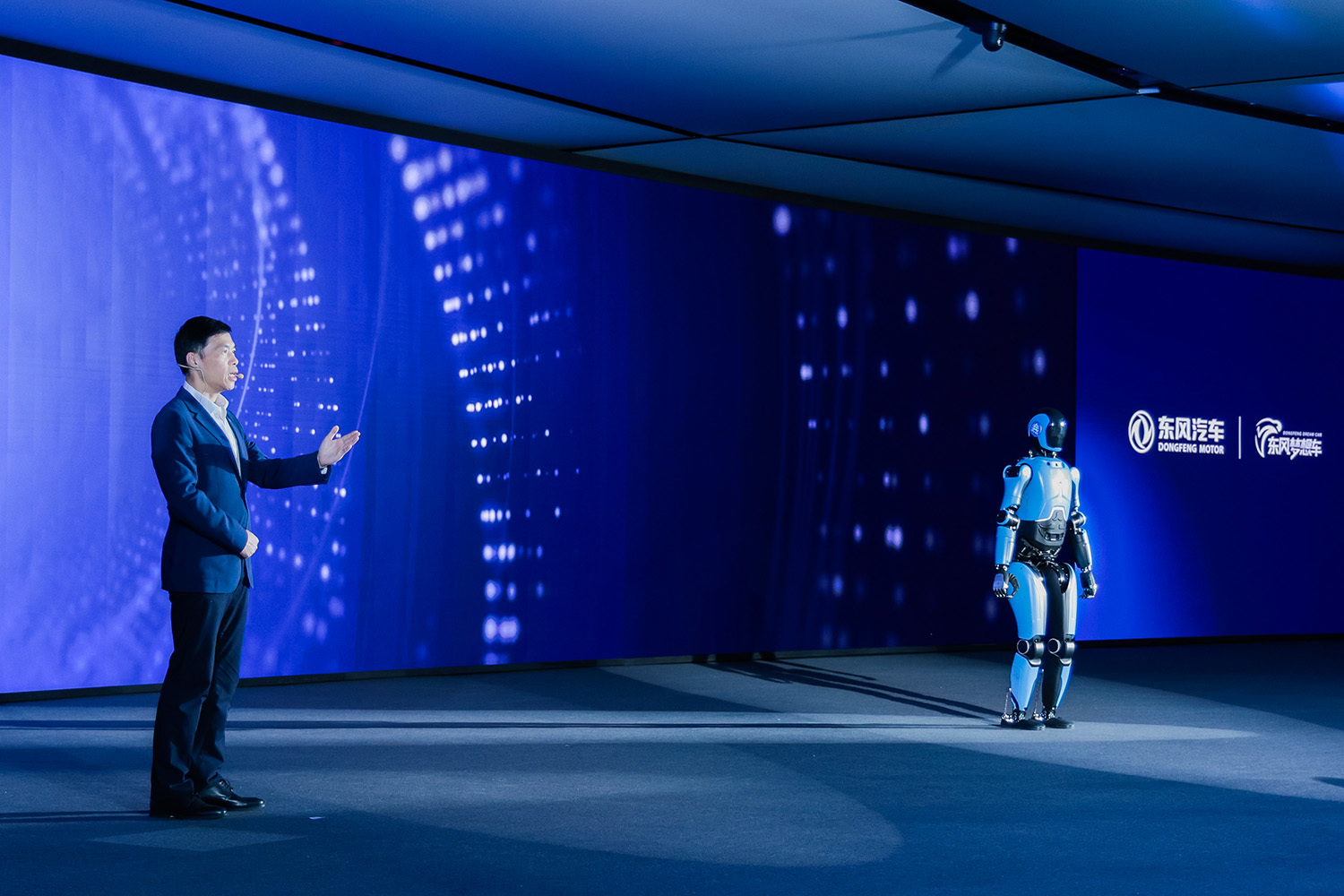 东风汽车研发总院院长杨彦鼎与搭载太极大模型的智能机器人“研小莫”展开跨维度对话,共议青年创新与智慧出行未来,展现东风汽车积极拥抱科技变革,加速AI技术融合应用,坚持以智慧出行赋能美好生活的战略决心,引发现场观众深度思考。