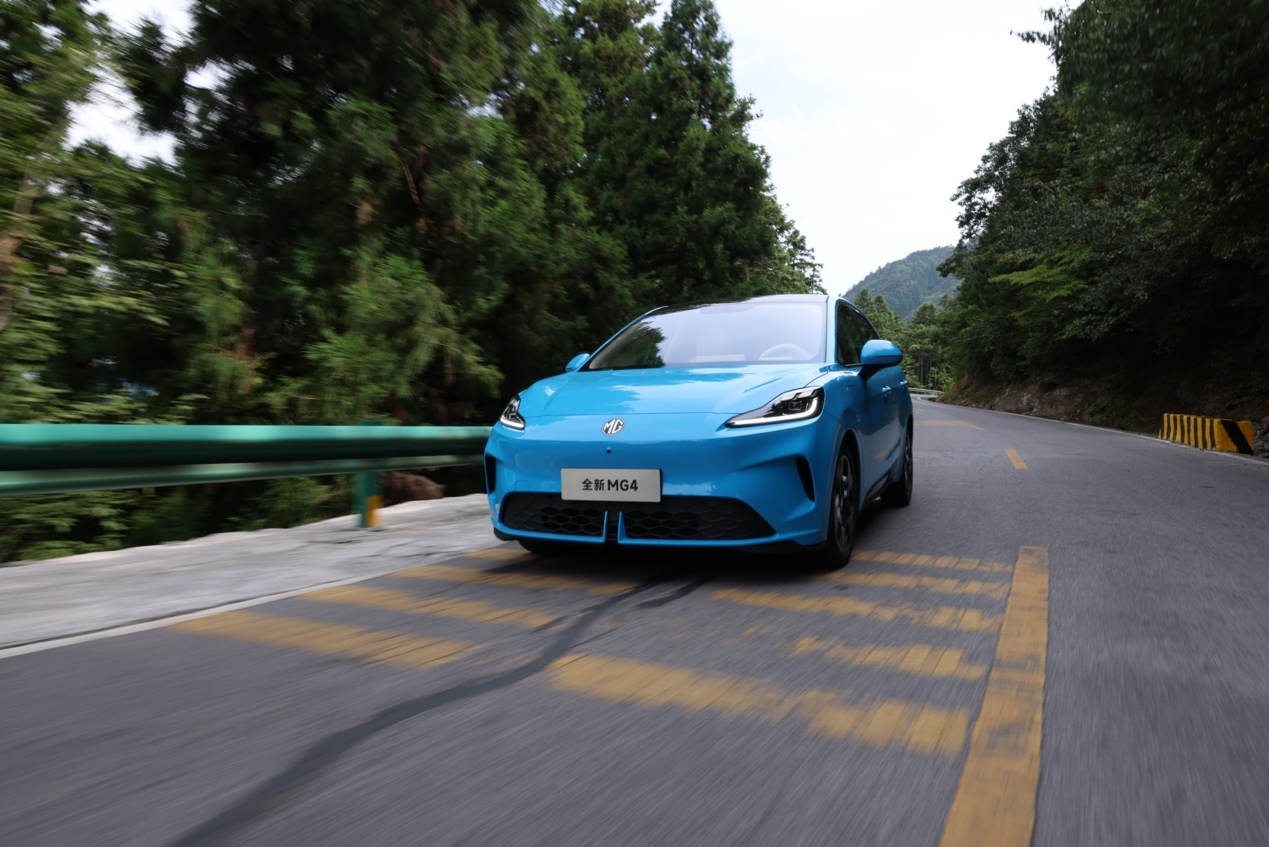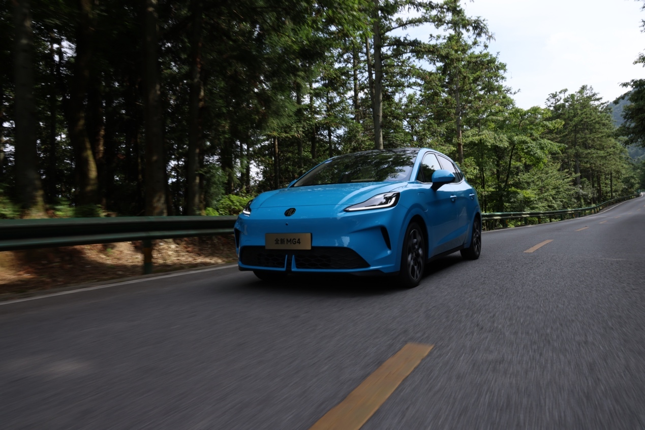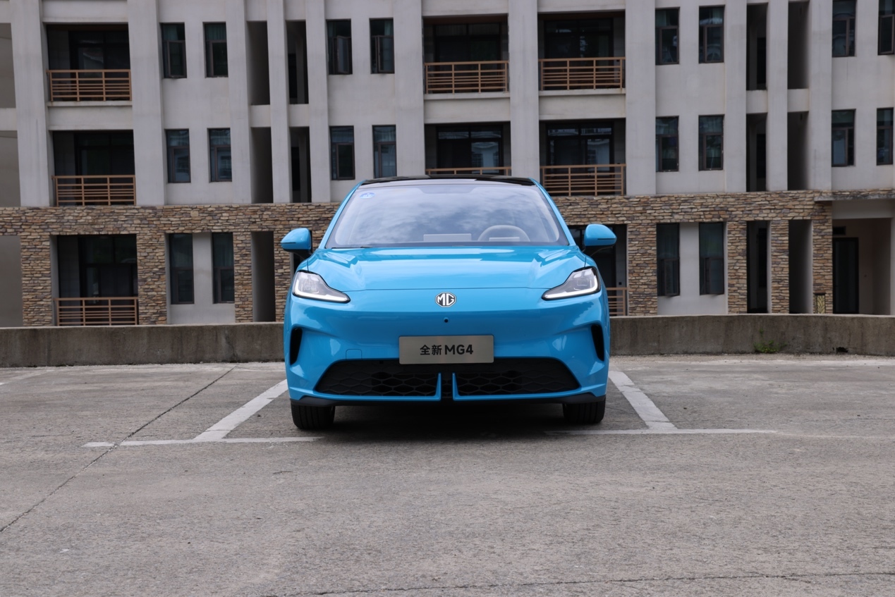 车侧,全新MG4采用长轴距与短前悬+短后悬的设计,这种布局不仅有效提升了车辆内部的空间感,让乘客拥有更舒适的乘坐体验,同时还对车辆的操控性能产生积极影响,并且从外部看起来也更加协调美观。