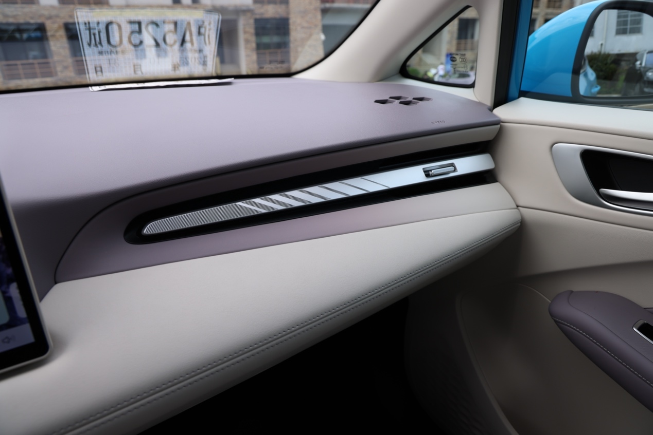 进入车内,给人眼前一亮的视觉感受。内饰提供蔷薇紫和黛山蓝两种配色方案,整体营造出温馨且富有质感的内饰氛围。