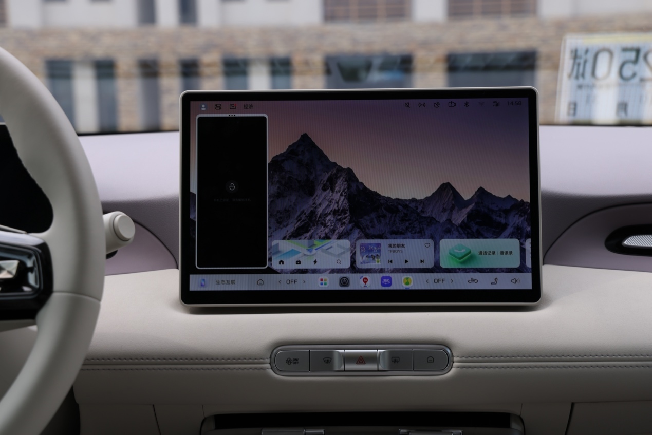 车内配备的悬浮式中控屏根据不同配置车型,会有两种尺寸,分别为 10.25英寸(720P分辨率)、12.8英寸(1080P分辨率)以及15.6英寸(2.5K分辨率)。此外,部分车型还搭载名爵与OPPO合作开发的智行车机互联系统。配备高通骁龙 8155芯片,集成了手机语音备车、手车应用融合、手车无感互联等多种实用功能。