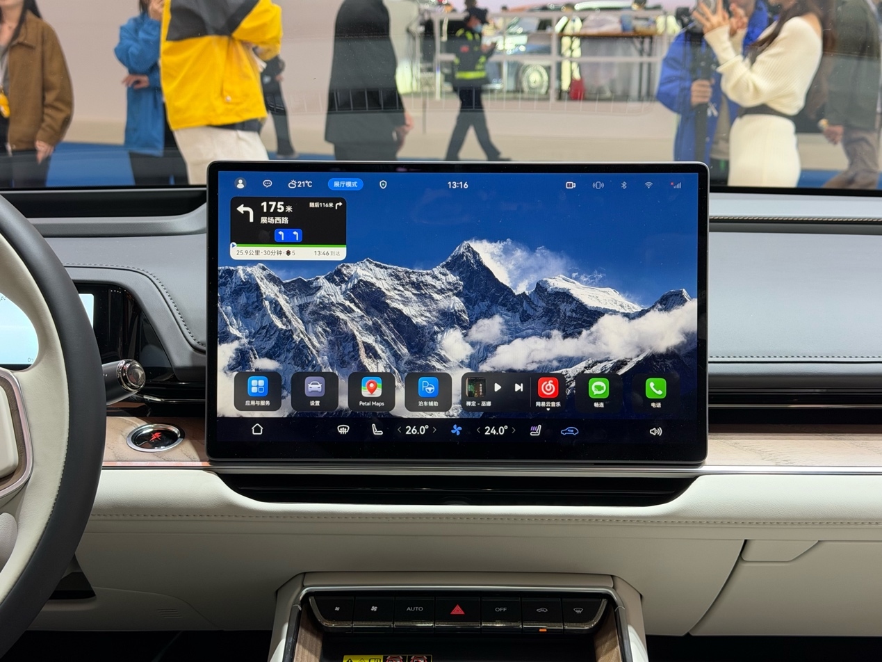中控屏尺寸夸张,搭载全系标配的鸿蒙座舱5.0,在 UI、流转、交互生态上基本与当下主流智能车保持同一梯队。仪表、HUD、人脸识别等功能也并未缺席。得益于怀挡布局,中控下方留出了更大的储物平台,并保留了部分实体按键,兼顾质感与操作逻辑。舒适性方面,零重力副驾、座椅通风、加热、按摩等功能均已涵盖,不再“看齐豪华”,而是直接做到“同级第一梯队”。