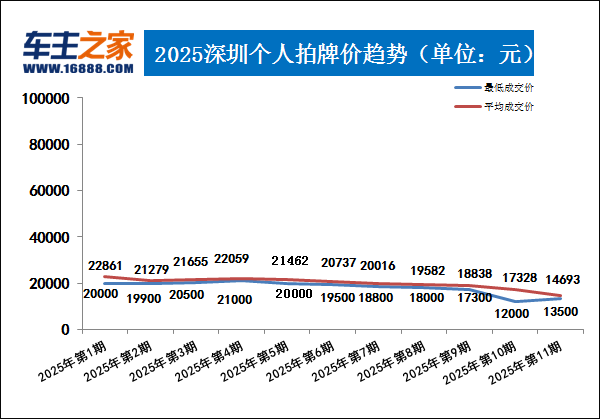 今日,广深两地2025年第11期拍牌结果正式出炉,其中深圳铁牌价又有不小变化。先看看深圳拍牌情况【深圳拍牌官网截图】深圳不仅天气降温,铁牌均价近期也是一降再降。11月均价更是再创今年新低,跌至14693元。而最低成交价相比上期有所上涨,达到13500元。再来看看广州拍..