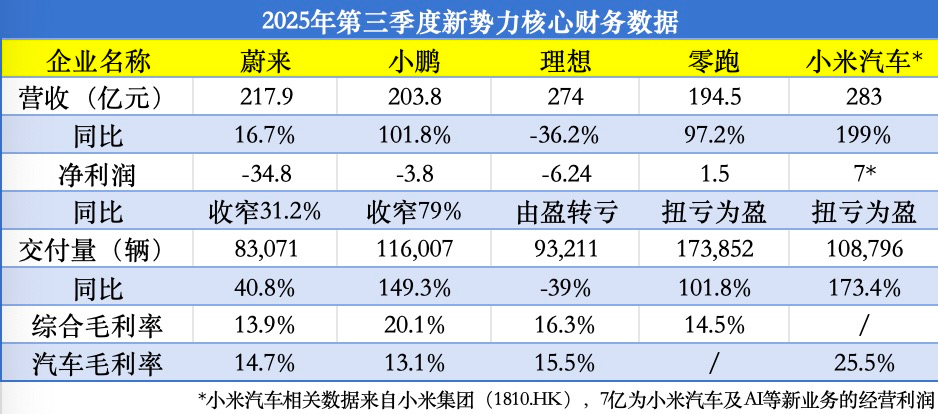 战局焦灼,三季度结束,2025年新势力脉络因为逐渐清晰。终局渐近,当大家都与“盈利”绑定,秩序被打破重排,零跑逆袭、小米过关、小鹏以低价产品求规模、蔚来等到转机、理想急转直下。