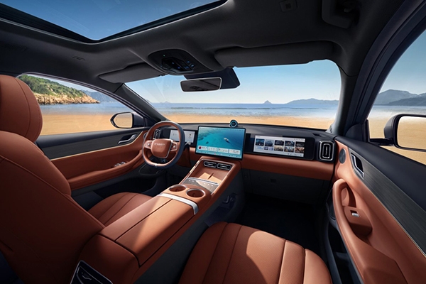 来到内饰,星途ET5提供10.25英寸仪屏+15.6英寸中控屏+12.3英寸副驾屏。新车还搭载了车规级8255芯片,可通过“三指飞屏”实现了信息的无缝流转,副驾可将导航信息同步至主驾屏。还支持HiCar、CarPlay、Carlink、Lion link无线投屏,集成AI语音大模型。