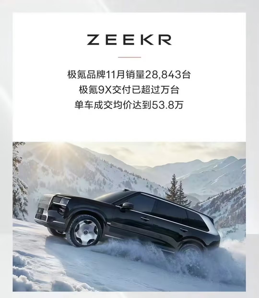 极氪1月交付2.88万辆,同比增长7%,前11个月累计交付19.39万辆。较年初定下的32万辆全年交付目标,完成率为60%。