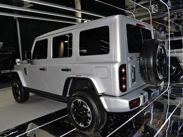 据最新消息,全新212 T01 PHEV将2026年一季度上市。外观方面,新车延续现款燃油版造型,前脸采用三条杠中网,搭配圆形大灯组,内部由两个圆形透镜组成的“8”字型车灯。车尾采用三颗圆形纵向排布尾灯,并且继续提供外挂式备胎。车身尺寸方面,参考现款车型长宽高分别为4..