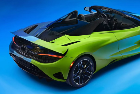 外观方面,新车依旧保留了迈凯伦750S Spider车型前卫动感的设计风格,看起来战斗感十足。车头造型低矮宽大,水滴样式头灯内部由条状灯带和通风口组成,极具标志性。颜色方面是新车一大亮点,车身为荧光绿、浅蓝、深蓝三色搭配,从左到右竖向组合,营造出独特的视觉效果。
