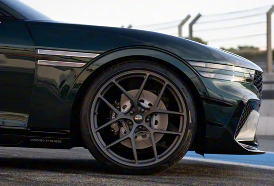 侧面线条优雅迷人,双五辐式轮毂战斗感爆棚,匹配倍耐力高性能轮胎。新车基于G90轿车平台打造,轴距3200mm,车长达到5100mm。车尾搭载双层扰流板,后包围造型略显夸张,另外“大小圆”搭配组合的排气也显得相当个性。