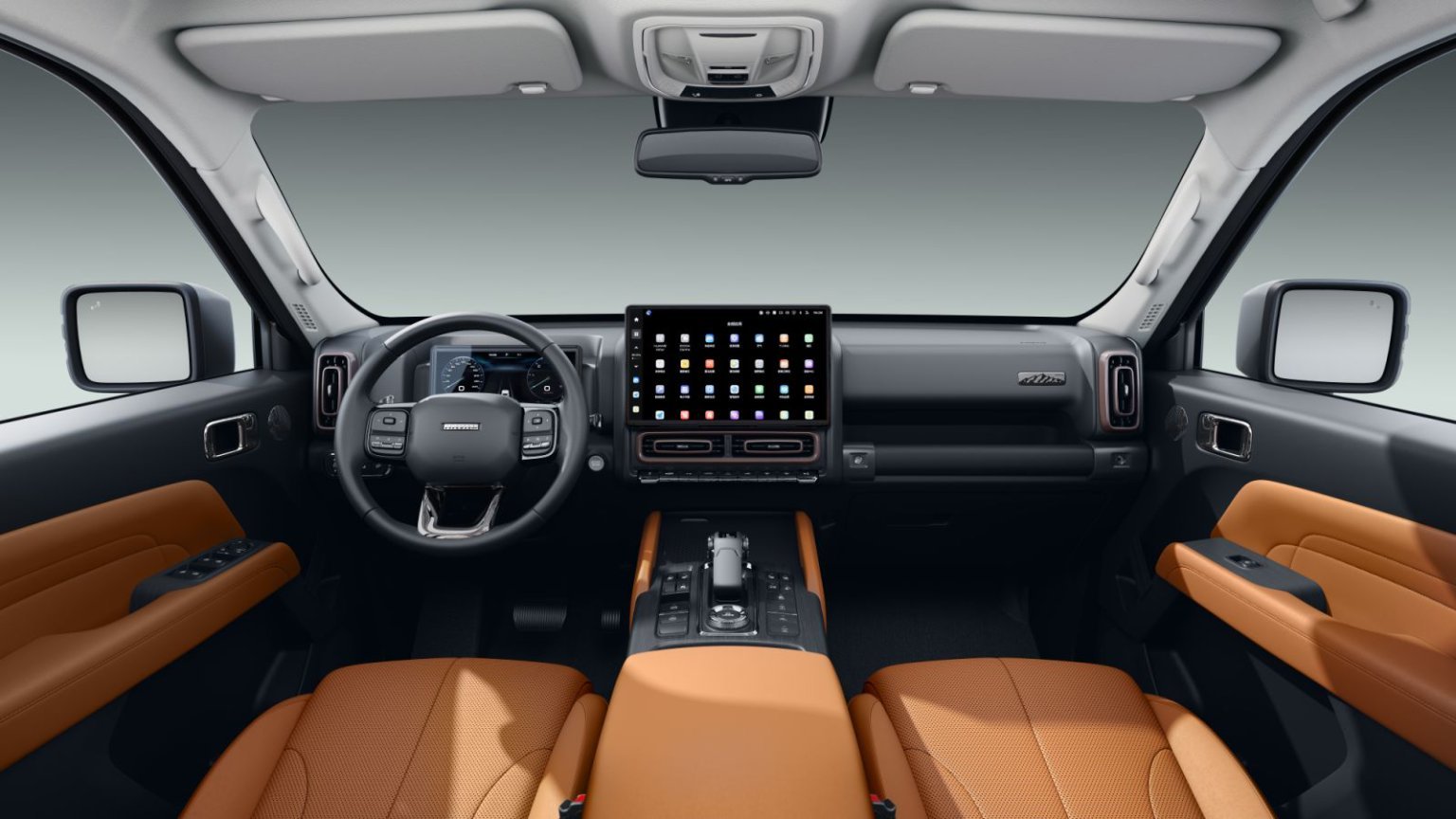 内饰方面,黑棕双色搭配的内饰风格,既彰显了豪华感又不失稳重。中控台配备了14.6英寸悬浮式中控大屏和10.25英寸液晶仪表盘,科技感十足。车机系统新增“穿越模式”,可实时显示海拔、气压、车身倾角等关键数据,为长途穿越提供精准参考。