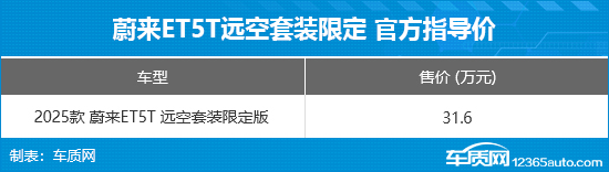 12月16日,蔚来ET5T远空套装限定版本正式上市,新车共推出1款车型,官方指导价为31.6万元。此外,使用BaaS电池租赁方式后,价格下探至20.8万元。
