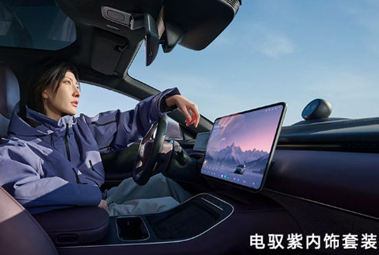 车内设计依旧简约科幻,提供电驭紫、薄藤紫两种内饰颜色,并限时赠送方向盘加热、前排座椅加热/通风/按摩、二排座椅加热,保证冬季用车舒适性。此外,头枕、腰靠、专属主题地毯也营造出更惬意的内饰氛围。