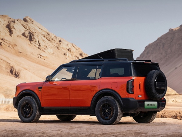 外观方面,新车延续了燃油版设计风格,贯穿式中网与两侧大灯组结合。不同的是中网搭配可发光的大尺寸“BRONCO”LOGO,另外大灯造型也不同。同时换装了更为宽厚的前包围设计,车顶还带了激光雷达装置。车身尺寸方面,增程版长宽高分别为5025*1960*1825(1815/1840)mm,轴距2950mm,纯电版长宽高分别为5025*1960*1815(1825)mm,轴距2950mm。