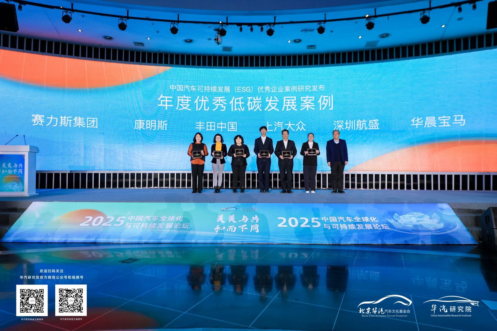 在“年度优秀低碳发展案例”类别,赛力斯集团、康明斯、丰田中国、上汽大众、深圳航盛、华晨宝马等企业凭借在节能减排、绿色制造、循环经济及生物多样性保护等方面的探索入选,展现出整车与供应链企业在“双碳”目标下主动降碳、提效、增韧的务实行动。