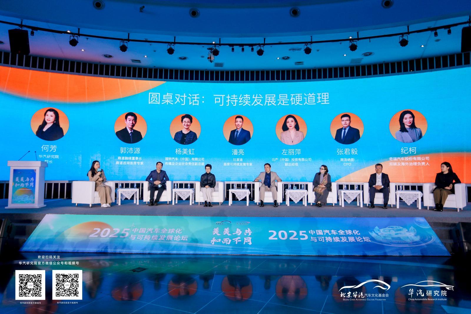论坛期间,华汽研究院联合罗兰贝格、商道咨询分别发布《中国汽车全球化发展报告2025》《中国汽车可持续发展蓝皮书2025》,系统梳理了中国汽车产业全球化可持续发展目标下的发展机遇、现实挑战及实践路径,并通过赛力斯、康明斯、丰田中国、航盛电子等领先企业的优秀案例,呈现了汽车企业在ESG管理、绿色低碳与社会责任方面的最新实践。